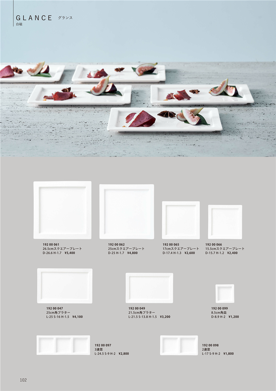 | h25-19200066-102 | グランス 15.5cmスクエアープレート | 上代 2,400円(税抜) 卸値 1,200円(税抜) (50%OFF) | ||