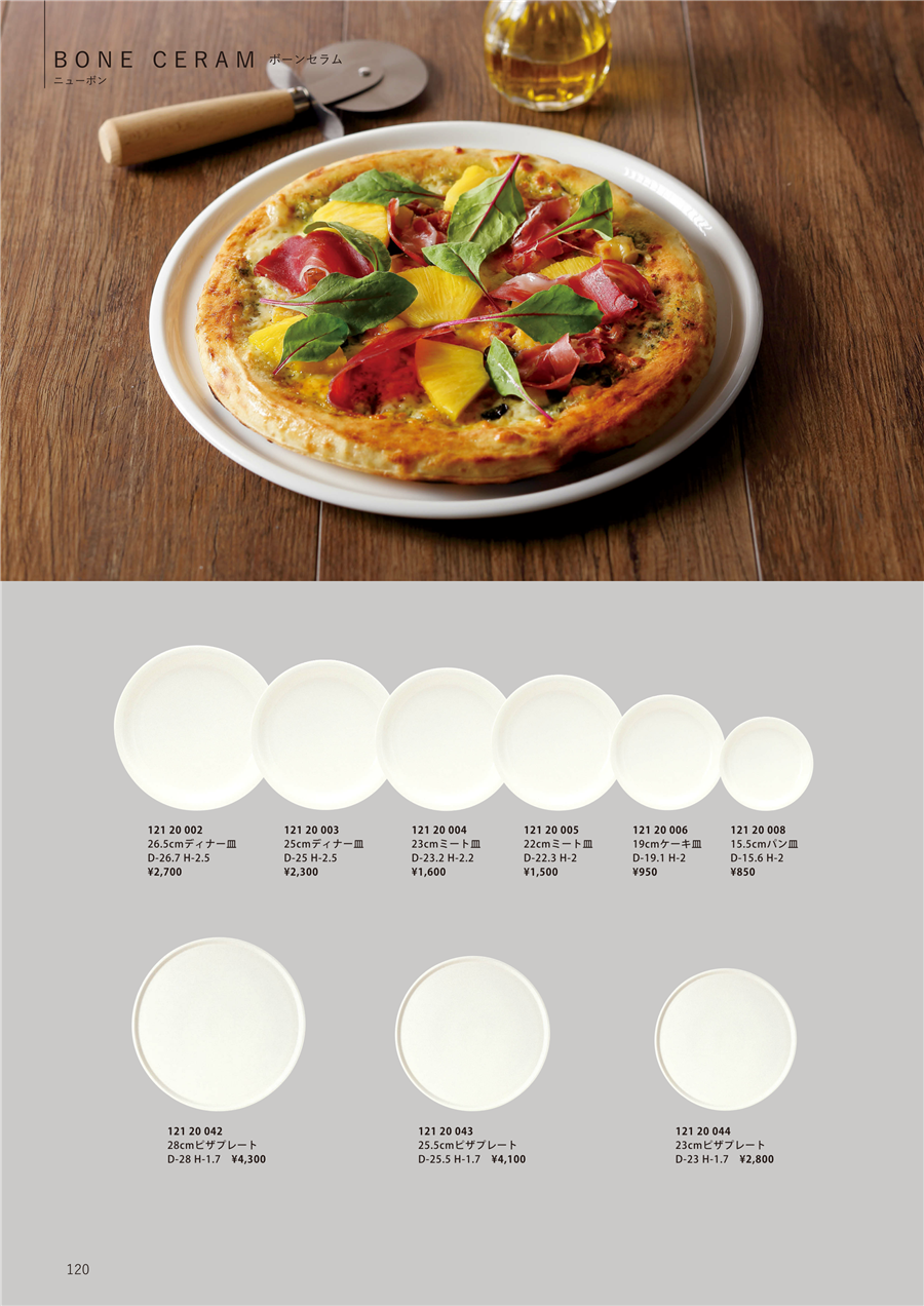 | h25-12120044-120 | ボーンセラム 23cmピザプレート | 上代 2,800円(税抜) 卸値 1,400円(税抜) (50%OFF) | ||