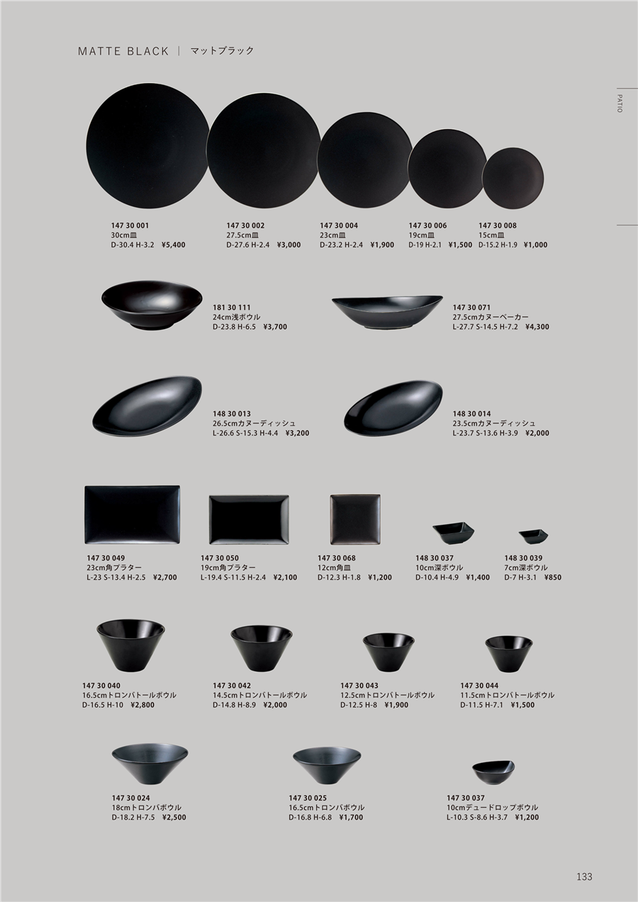 | h25-14730004-133 | パティオ マットブラック 23cm皿 | 上代 1,900円(税抜) 卸値 950円(税抜) (50%OFF) | ||
