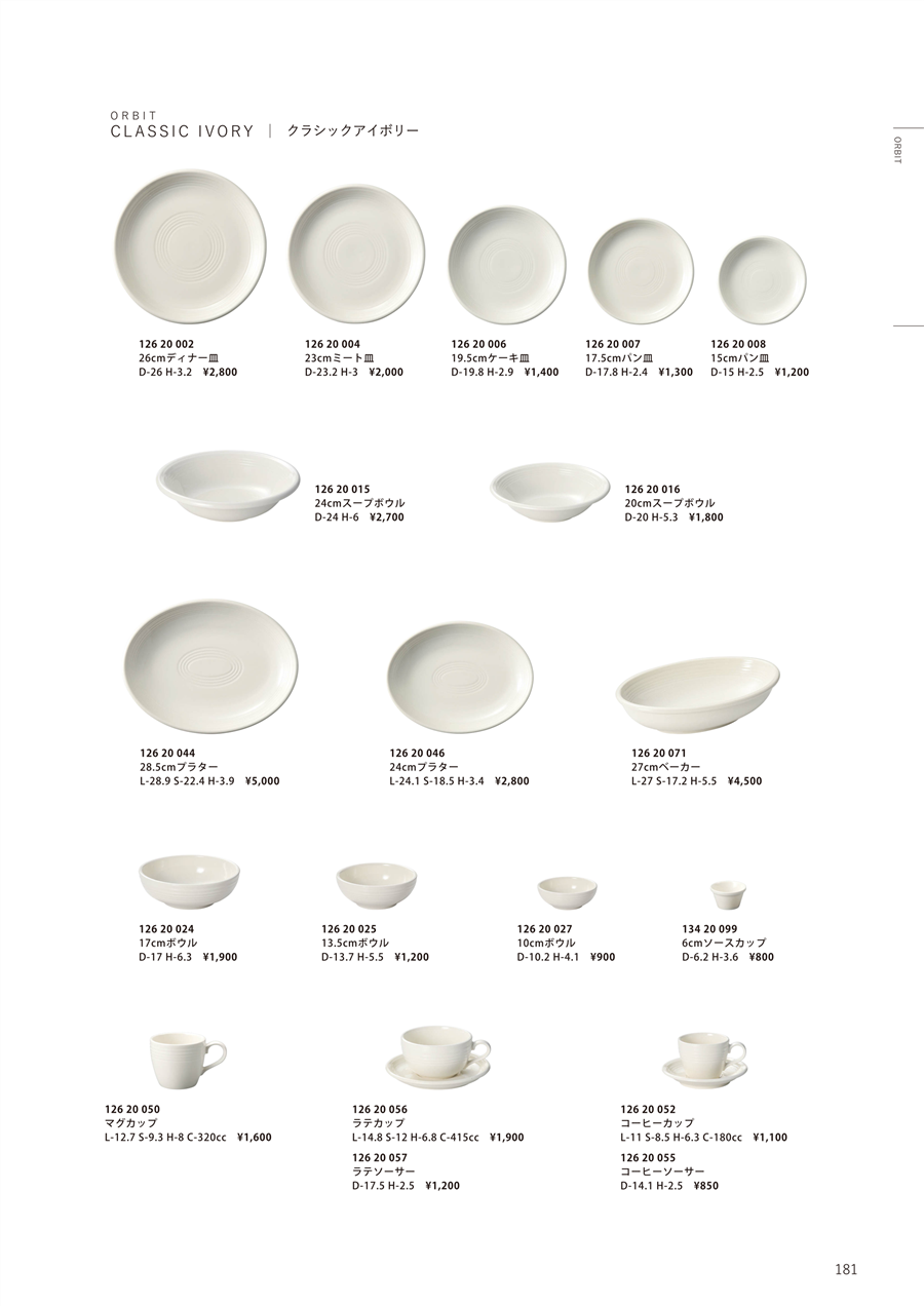 | h25-12620015-181 | オービット クラシックアイボリー 24cmスープボウル | 上代 2,700円(税抜) 卸値 1,350円(税抜) (50%OFF) | ||