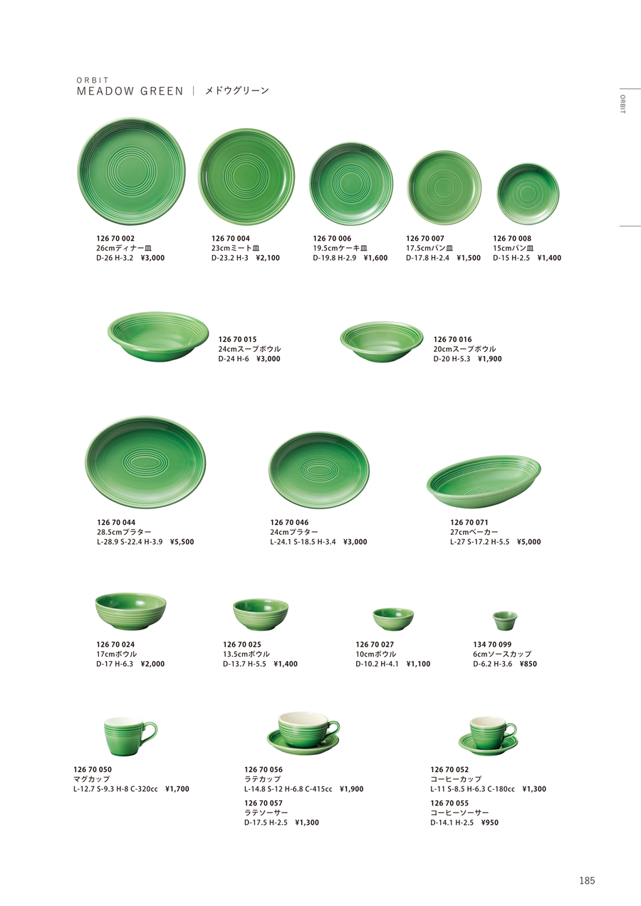 | h25-12670057-185.257 | オービット メドウグリーン ラテソーサー | 上代 1,300円(税抜) 卸値 650円(税抜) (50%OFF) | ||