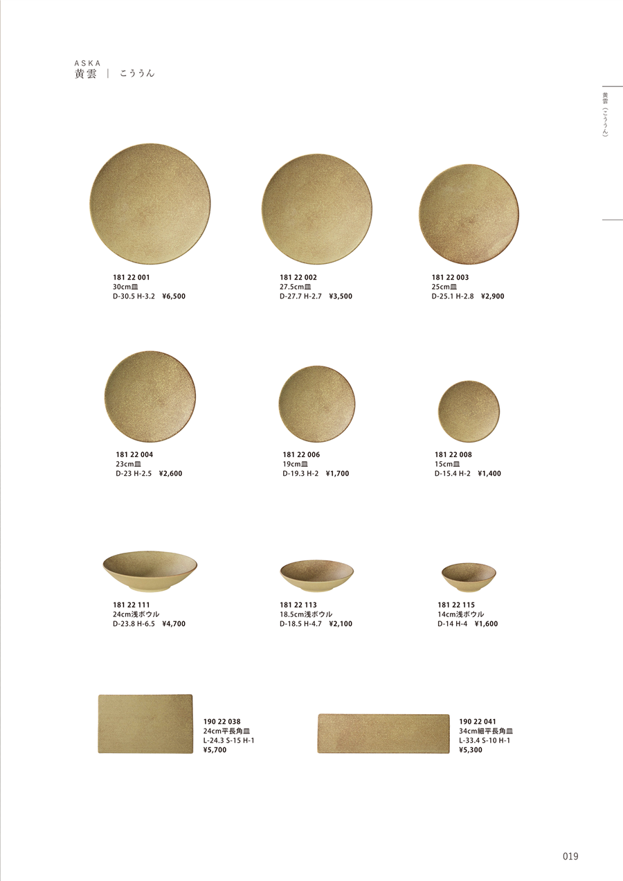 | h25-19022038-19 | 黄雲 24cm平長角皿 | 上代 5,700円(税抜) 卸値 2,850円(税抜) (50%OFF) | ||