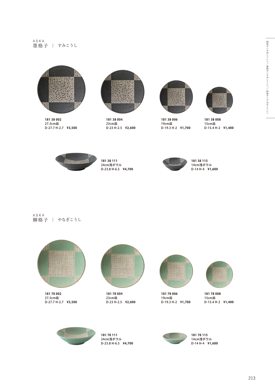 | h25-18138004-213 | 墨格子 23cm皿 | 上代 2,600円(税抜) 卸値 1,300円(税抜) (50%OFF) | ||