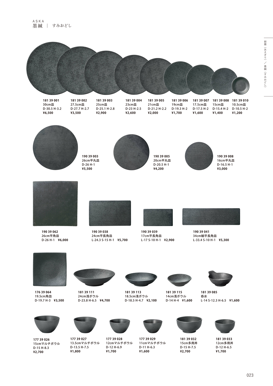 | h25-18139004-23 | 墨縅 23cm皿 | 上代 2,600円(税抜) 卸値 1,300円(税抜) (50%OFF) | ||
