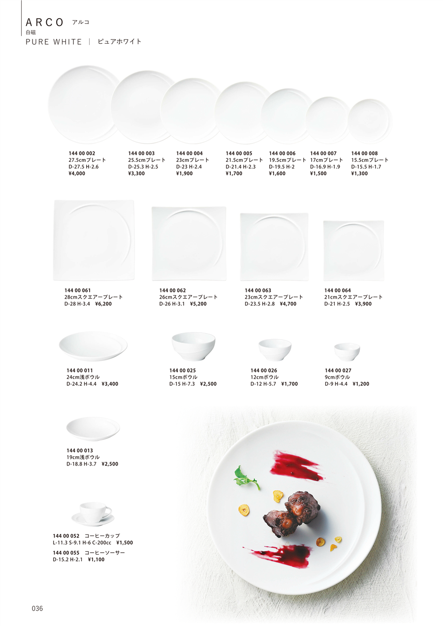 | h25-14400063-36 | アルコ ピュアホワイト 23cmスクエアープレート | 上代 4,700円(税抜) 卸値 2,350円(税抜) (50%OFF) | ||
