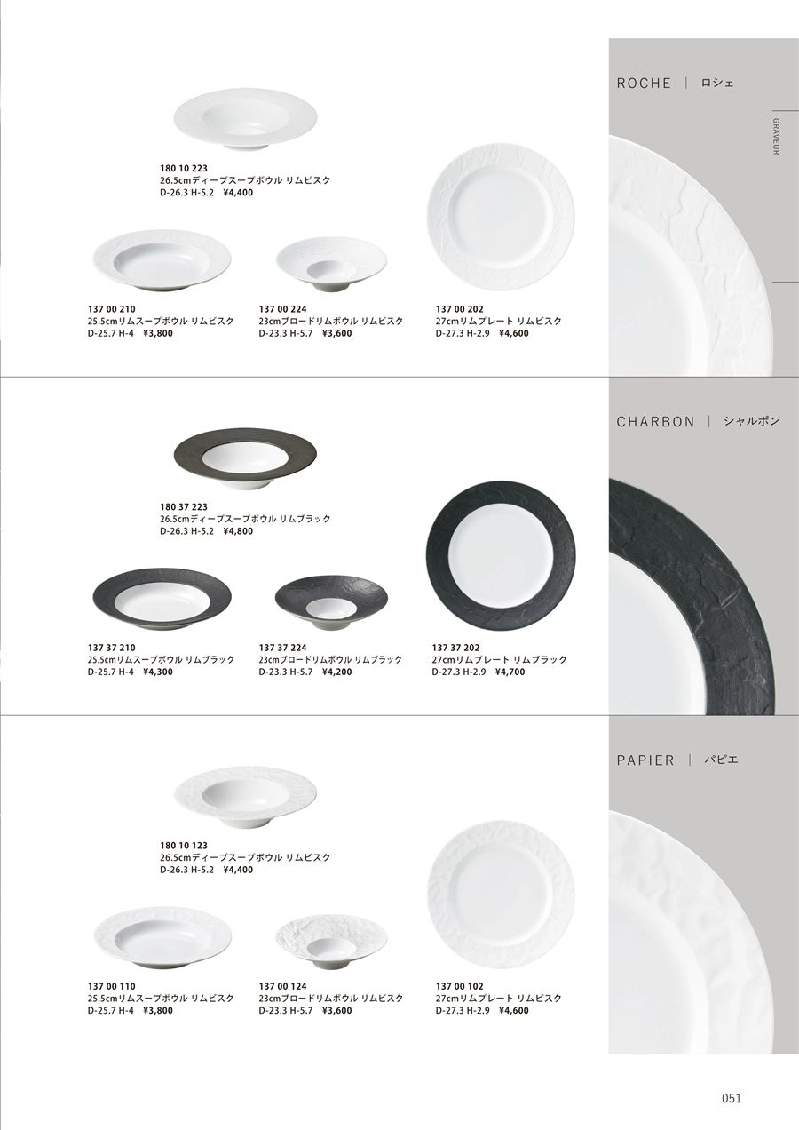 | h25-13700210-51 | グラヴェール ロシェ 25.5cmリムスープボウル リムビスク | 上代 3,800円(税抜) 卸値 1,900円(税抜) (50%OFF) | ||