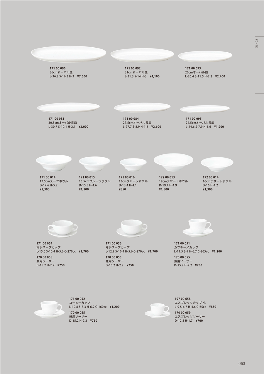 | h25-17100083-63 | フォンテ 30.5cmオーバル長皿 | 上代 3,000円(税抜) 卸値 1,500円(税抜) (50%OFF) | ||