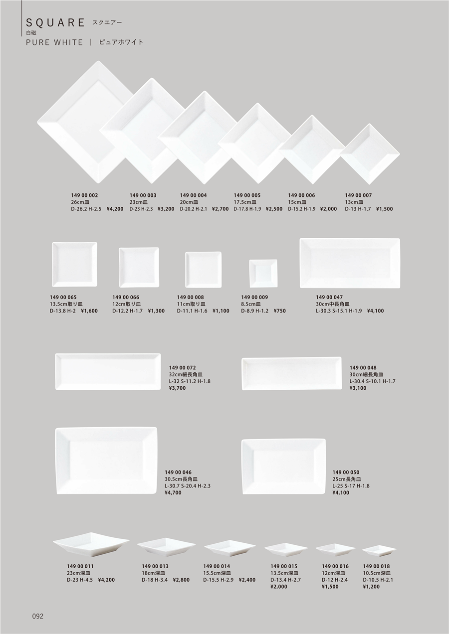 | h25-14900011-92 | スクエアー 23cm深皿 | 上代 4,200円(税抜) 卸値 2,100円(税抜) (50%OFF) | ||
