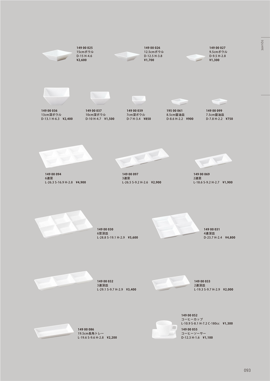 | h25-14900030-93 | スクエアー 6菜深皿 | 上代 5,600円(税抜) 卸値 2,800円(税抜) (50%OFF) | ||