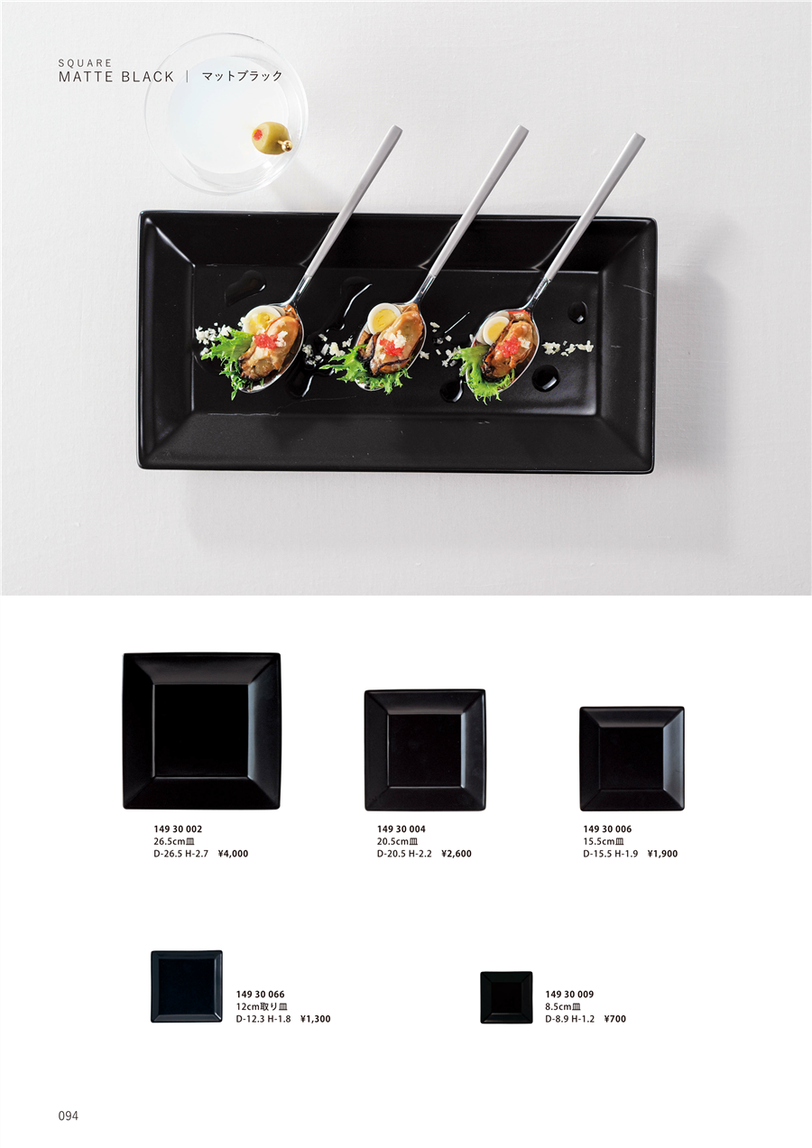 | h25-14930006-94 | スクエアー マットブラック 15.5cm皿 | 上代 1,900円(税抜) 卸値 950円(税抜) (50%OFF) | ||